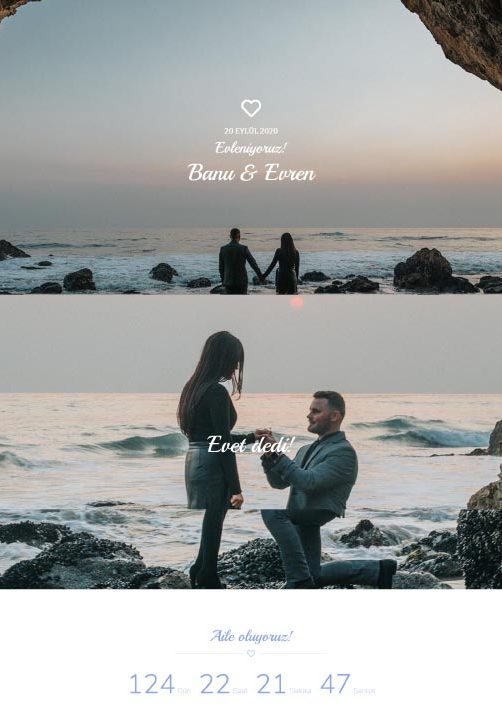 İlk tanışma, ilk "Seni Seviyorum", evlilik teklifi nişan gibi tarihlerinizin ölümsüz olmasını istiyorsanız davetiyenize ekleyelim.