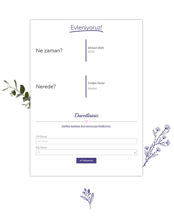 ZoomDetails MenekşeDüğün DavetiyeleriBy davetiyemizadmin20 Mayıs 2020Minimalist online davetiye tasarımı.